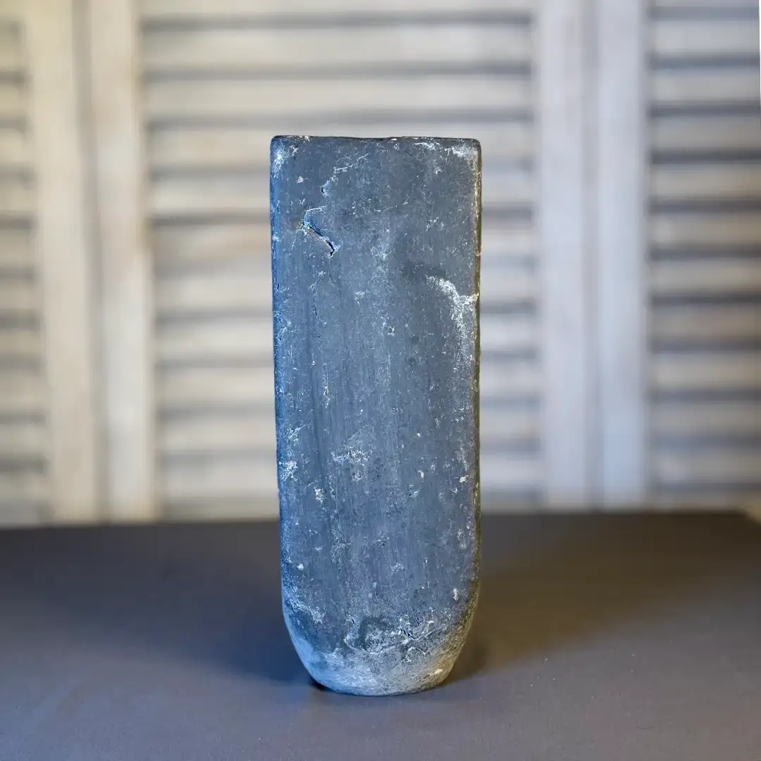 Mit ihrer schmalen, aufrechten Form und der bewusst unperfekten Struktur bringt sie eine ruhige, fast skulpturale Präsenz in Dein Zuhause.