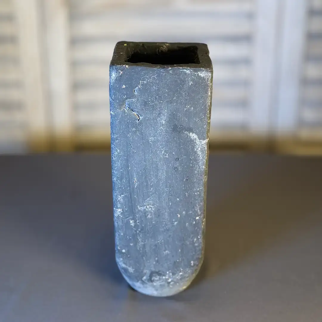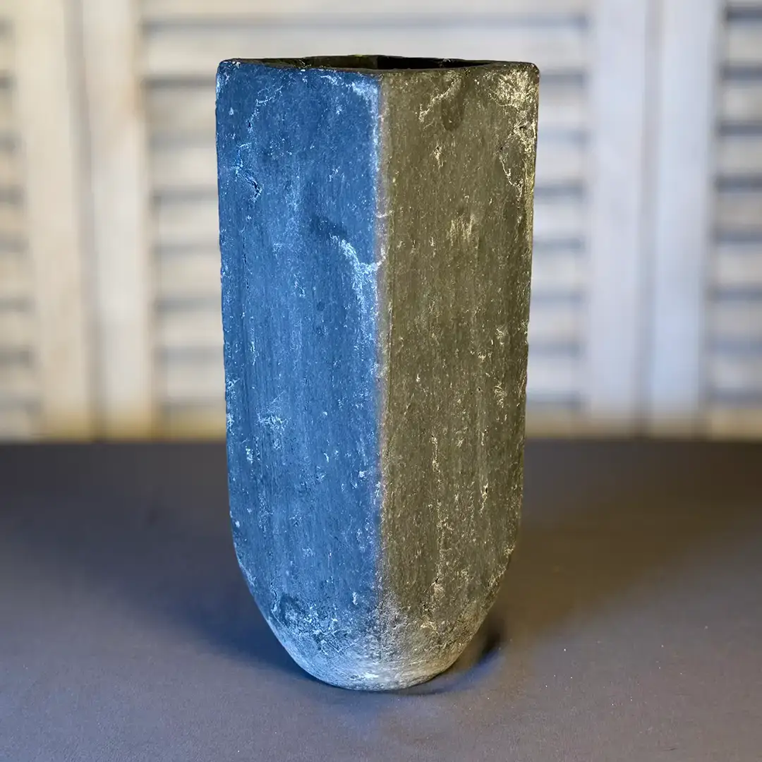 Klare Linien, raue Oberfläche – diese Vase setzt auf reduzierte Stärke statt lauter Effekte.